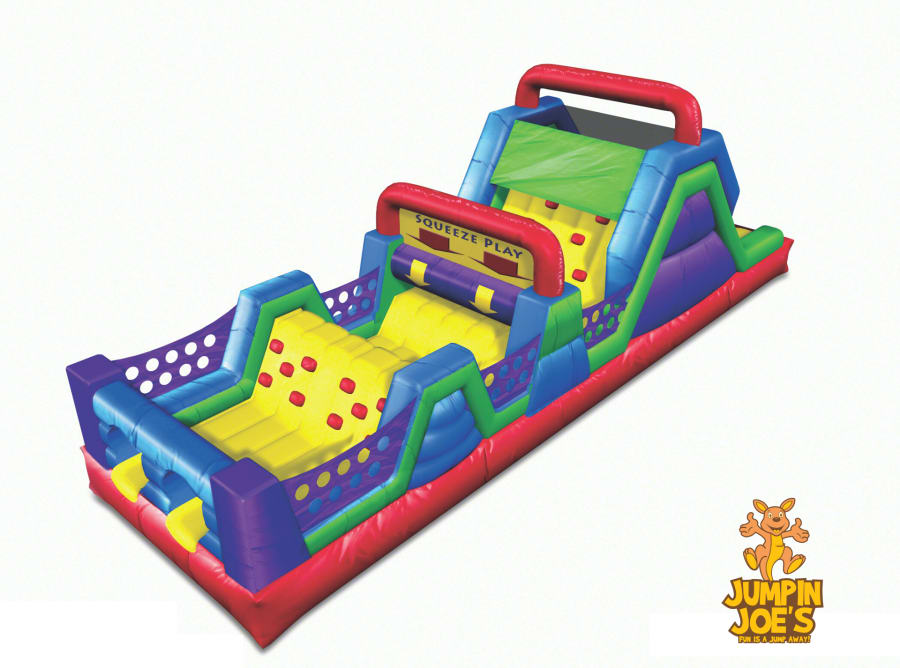 Two participants will start at the entrance to race to the finish for each participant they push through vertical and horizontal hurdles, dive and crawl through the floor tunnels, Squeeze through the pop ups, and then climb the way to the top of a rock wall and then slide down the giant slide to the finish.